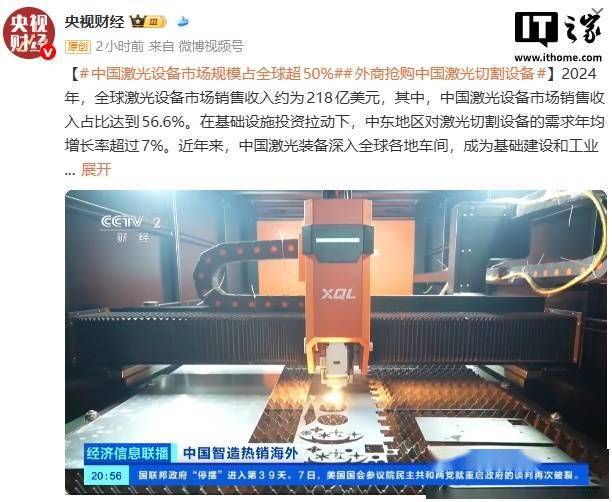 IT之家 11 月 9 日动静,据央视财经报道,2024 年,全球激光设备市场发卖收入约为 218 亿美元(IT之家注:现汇率约合 1553。25 亿元人平易近币),此中,中国激光设备市场发卖收入占比达到 56。6%。报道称,正在根本设备投资拉动下,中东地域对激光切割设备的需求年均增加率跨越 7%。近年来,中国激光配备深切全球各地车间,成为根本扶植和工业制制的得力东西。从出口规模来看,欧洲和东南亚占中国激光切割机出口总量的 60% 以上,、越南、